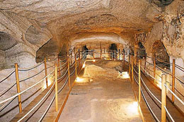 Πρόκειται για ένα υπόγειο νεκροταφείο, σκαλισμένο στο μαλακό πέτρωμα της περιοχής, που χρονολογείται στο 2ο αι. μ.Χ. και συνέχισε να χρησιμοποιείται έως τα τέλη του 5ου αι. μ.Χ. Πρέπει να ήταν το νεκροταφείο της πρώτης χριστιανικής κοινότητας του νησιού. Το μνημείο αποτελείται από τρεις κατακόμβες με ισάριθμους νεκρικούς θαλάμους (Α, Β και Γ) και μικρότερους διαδρόμους, που ξεκινούν από κάθε νεκρικό θάλαμο. Το πλάτος των διαδρόμων κυμαίνεται μεταξύ 1 και 5 μ. Το ελάχιστο ύψος τους είναι 1,60 μ., ενώ το μέγιστο δεν ξεπερνά τα 2,50 μ. Οι νεκρικοί θάλαμοι και οι δευτερεύοντες διάδρομοι παρουσιάζουν την ίδια διαμόρφωση. Στις πλευρές τους είναι λαξευμένοι τοξωτοί τάφοι (αρκοσόλια), ενώ τάφοι υπάρχουν συχνά και στο δάπεδο. Οι τάφοι ήταν σκεπασμένοι με λίθινες πλάκες, από τις οποίες διατηρούνται στην αρχική τους θέση μόνο κάποια τμήματα. Μερικοί τάφοι έχουν κόγχες για την τοποθέτηση λύχνων ή νεκρικών προσφορών. Τα αρκοσόλια ήταν επιχρισμένα με κονίαμα, χρώματος μπλε στο εσωτερικό, ενώ το εξωτερικό τους περίγραμμα ήταν διακοσμημένο με μια κόκκινη ταινία. Αρκετές επιγραφές βρέθηκαν στις κατακόμβες και αποτελούν πρόσθετη απόδειξη του ταφικού χαρακτήρα του μνημείου.